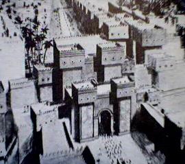 Here is a restoration of the Gate of Ishtar, with its decoration in glazed bricks.