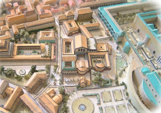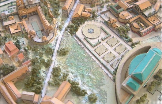 In the centre of the picture, between the Baths of Caracalla and the aqueducts Appia and Marcia,