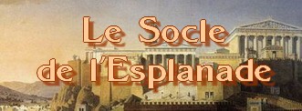Au pied de l'Esplanade de la Stoa d'Eumène, un immense socle portant un quadrige.