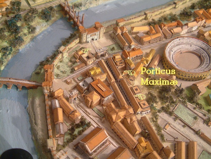 Porticus Maximæ qui longe du côté droit la Via Tecta au centre de l'image.