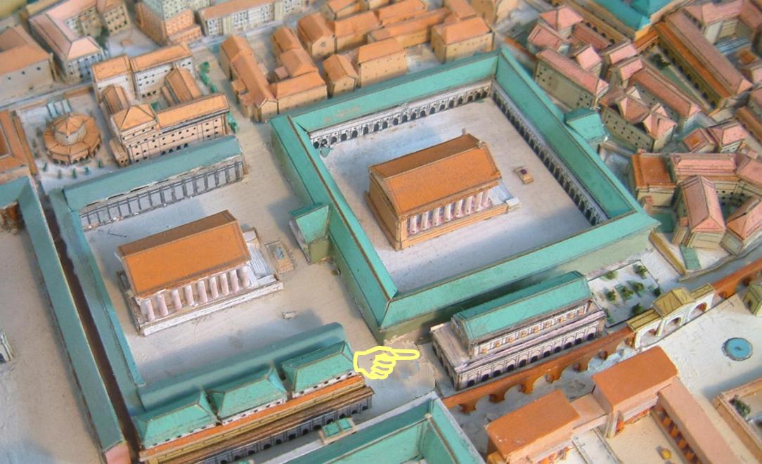entre le portique sud du Temple d'Hadrien et l'aqua Virgo. Il semble que ce soit l'empereur Alexandre Sévère