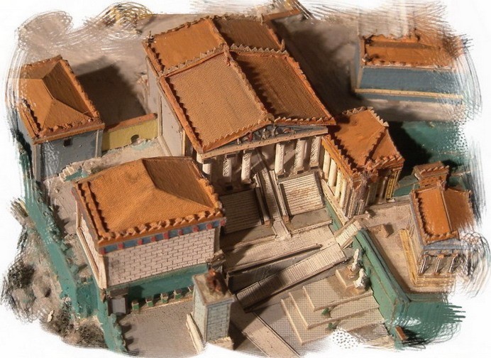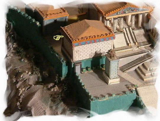 before the construction of the Beulé gate, and probably as well after its construction. Going down the slope, on the left, visitors could see a small sanctuary, the