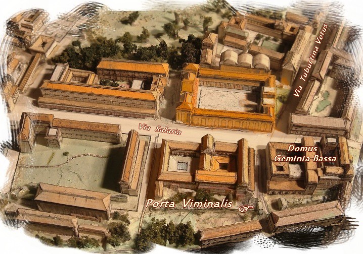 porta Collina du mur servien, puis fut au IIIe siècle bornée par le nouveau mur d'Aurélien à la porta Nomentana. A l'entrée