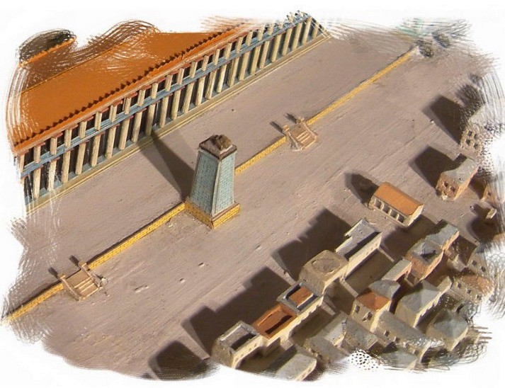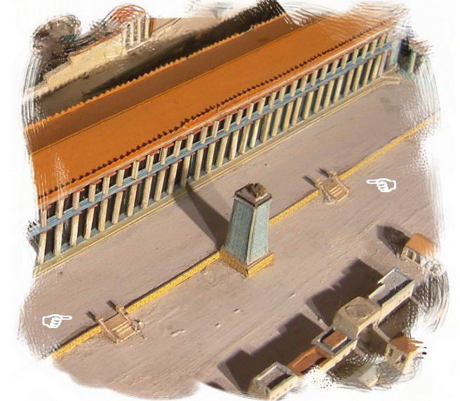 Au pied de l'Esplanade de la Stoa d'Eumène, un immense socle portant un quadrige.