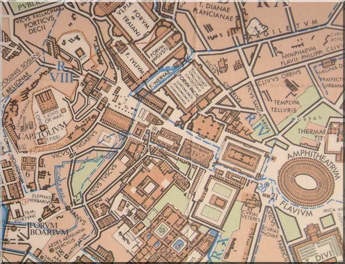 Temple de Vénus et Rome Portique Margaritaria Colonnes honorifiques Temple de Saturne Tabularium Temple de la Concorde Temple de Vespasien Basilique Aemilia Temple d'Antonin Temple de Romulus Temple de Vesta Maison des Vestales Temple de Cesar La Regia Temple des Dioscures Temple d'Heliogabale La Basilique Julia