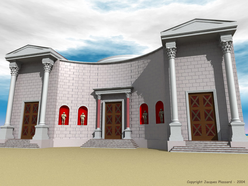 présentait une façade peu orthodoxe. C'est d'abord un temple circulaire qui est flanqué de deux