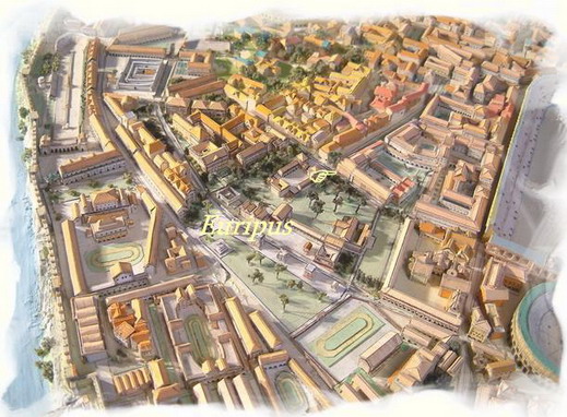 des Viertels erbaut zu sein. Auf der anderen Seite des Euripus, 7, stand ein anderer viel größer Altar, der Altar des Mars, 5.